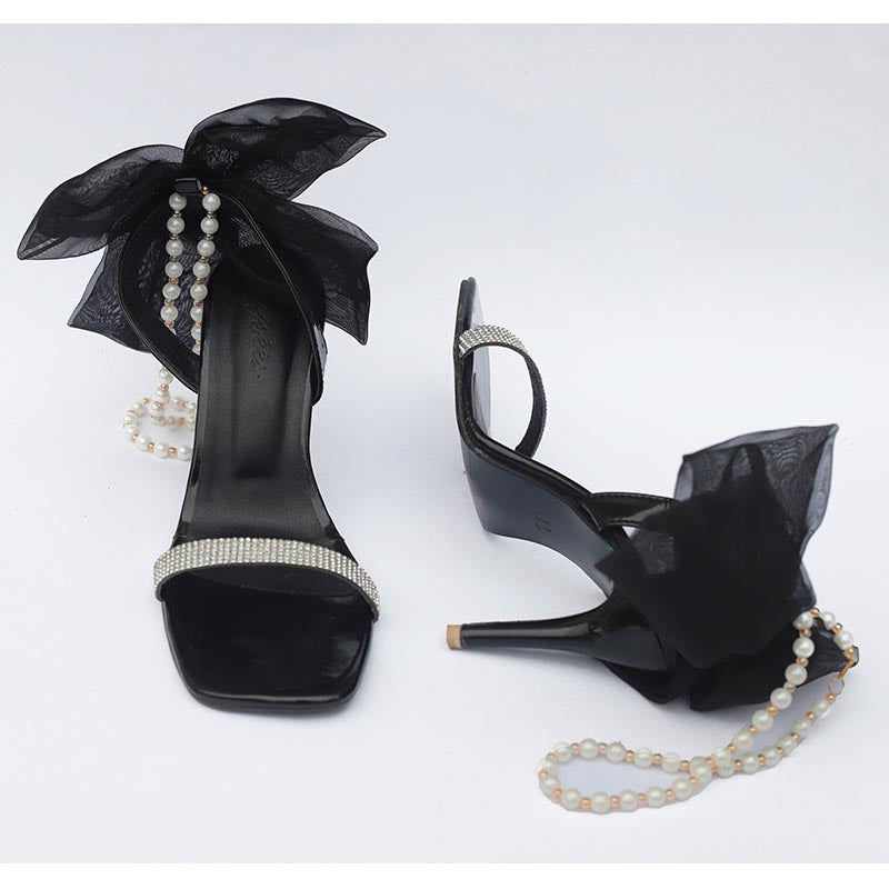 Medalyn offers height to your personality with grace and sophisticated organza bow and pearly wrap for the beauty of ankle