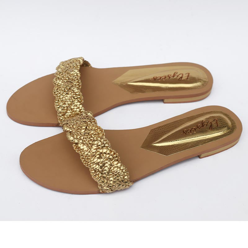 Zuri golden braid slides added value to your reputation and shine your feet with the glow of beauty